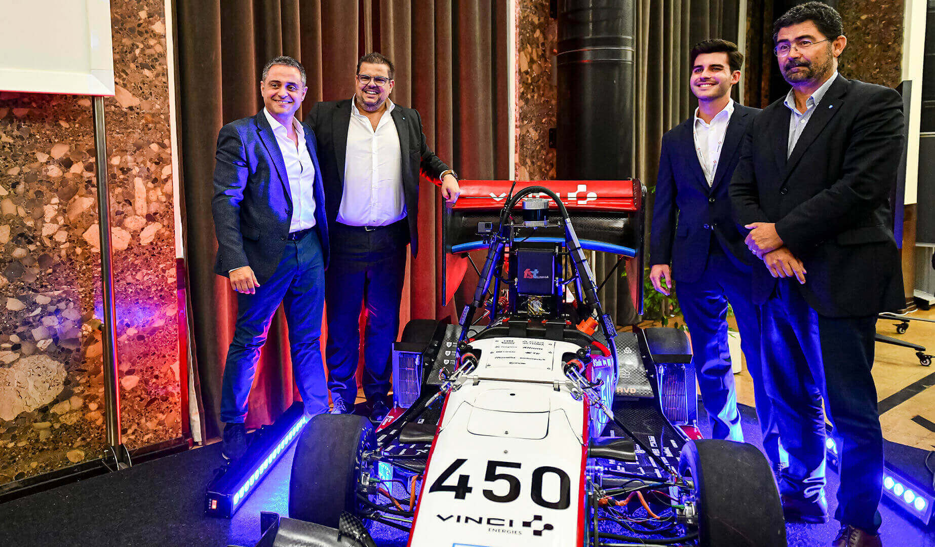 “Temos acompanhado o percurso, evolução e sucessos que a Fórmula Student do Técnico tem alcançado. Este ano a VINCI Energies Portugal junta-se com muita honra a este projeto. Cativa-nos o talento, a ambição e a tenacidade destes jovens. É o espírito empreendedor, conjugado com a excelência técnica, que faz acontecer o nosso próprio projeto empresarial. É também isso que nos liga à Fórmula Student. Queremos fomentar a ligação empresas-academia e promover a qualidade da engenharia e tecnologia que se faz em Portugal.” E conclui: “acelerar a transição energética e transformação digital das nossas organizações, do nosso país e do mundo, precisa definitivamente deste ADN de superação e conquista. O Técnico – pelo seu legado e continuado investimento – e, em particular, estes estudantes, são motivo de grande orgulho para este apoio.”